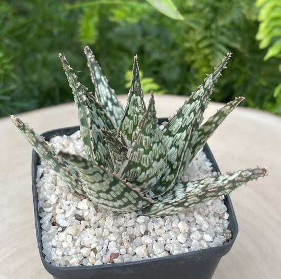 Compact and structured, the Aloe ‘Doran Black’ forms a dense and regular rosette, ideal for pot cultivation or arrangements. Its moderate size, generally between 10 and 20 cm, makes it a plant perfectly suited to small spaces, contemporary interiors or succulent collections.
