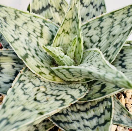 Its foliage is undoubtedly its main asset. The fleshy leaves store water, allowing the plant to withstand periods of drought. They are edged with small flexible teeth and have a rough texture due to the white outgrowths. This combination gives an almost mineral appearance, reinforced by its dark coloration.