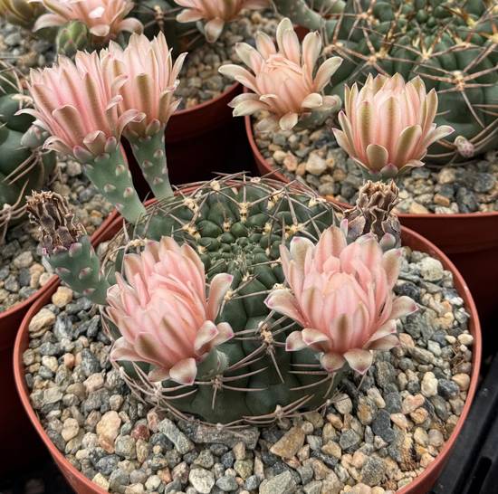 🌼 Shape: large funnel-shaped flowers, appearing at the top of the cactus